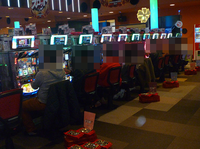 パチスロからも大きな盛り上がりが感じられた「パチンコ玉三郎糸魚川店」。さまざまな機種が笑顔に彩られているホールであった。