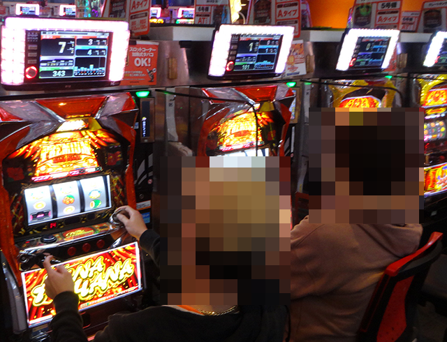 パチンコとパチスロの両方で、遊技を満喫しているような姿に出会えた。