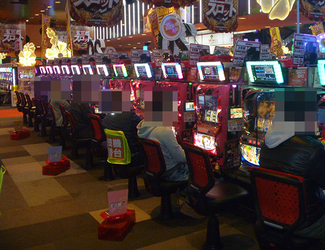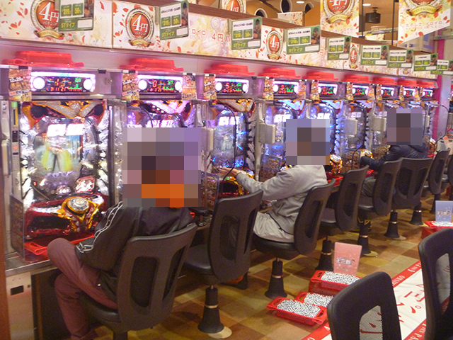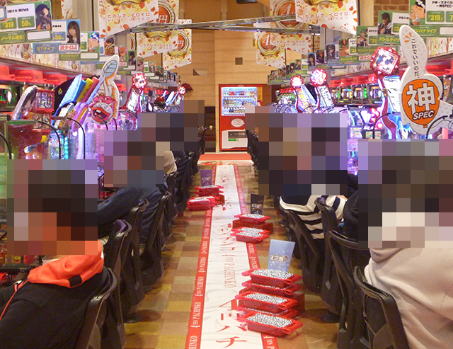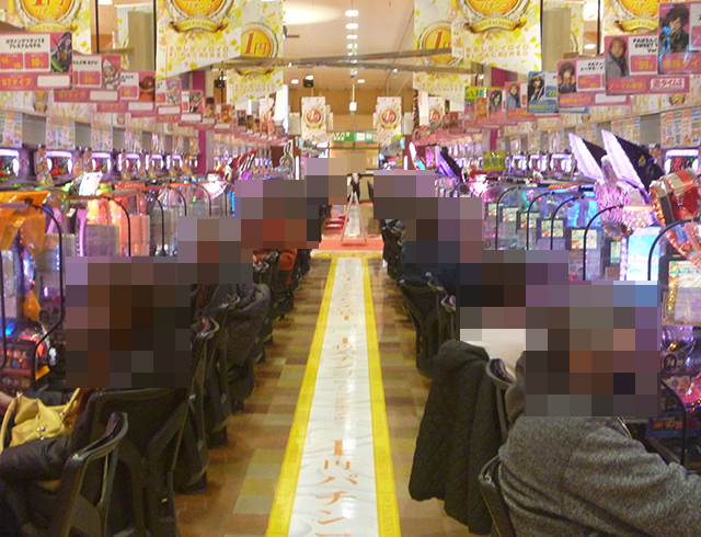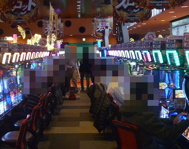 パチンコとパチスロの両方で、プレイヤーたちが元気よく遊技中!