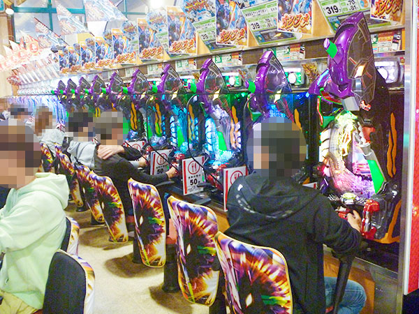 取材時は既に多くのプレイヤーが集結し、パチンコ・パチスロを問わずにぎやかな状況となっていた。