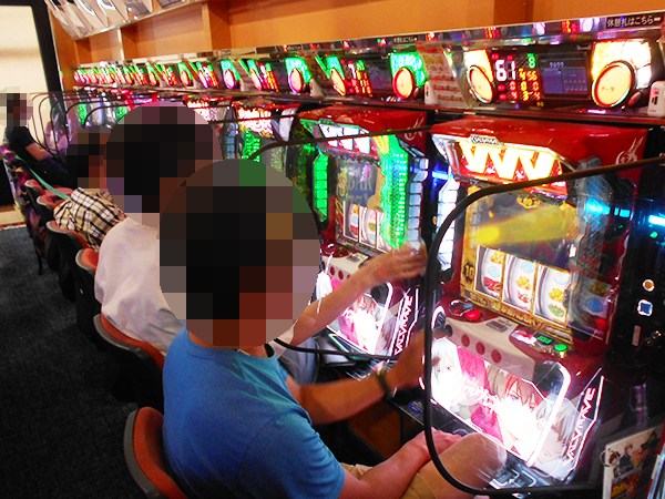取材時は既に多くのプレイヤーが集結し、パチンコ・パチスロを問わず、にぎやかな状況となっていた。