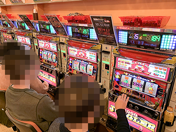「マイジャグラーⅣ」や「ゴーゴージャグラー2」、「マイジャグラーⅢ」といったジャグラーシリーズでは機種のポテンシャルを上手く発揮するプレイヤーが多く、実に微笑ましい光景が広がっていた。