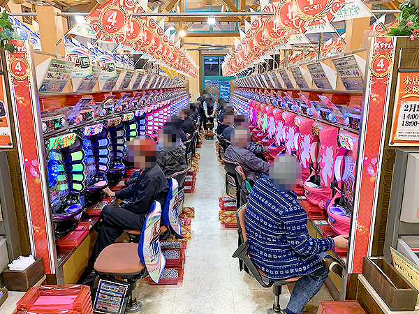 店内では貸し玉料金を問わず様々な機種で、心ゆくまで楽しむプレイヤーの姿が見られた。