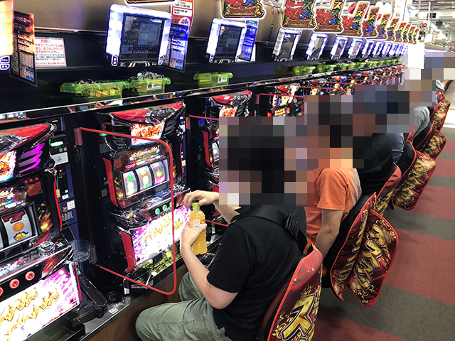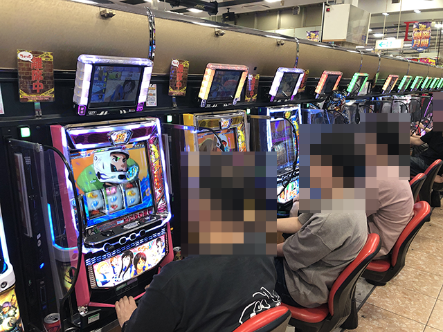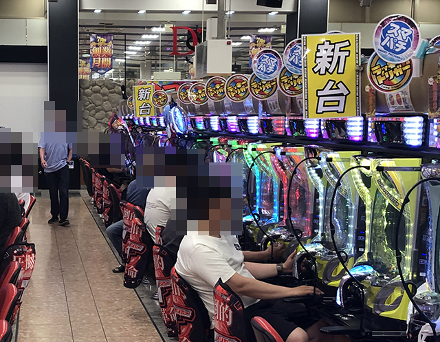 7月27日の店内では、多くのプレイヤーが笑顔で遊技をおこなっていた。