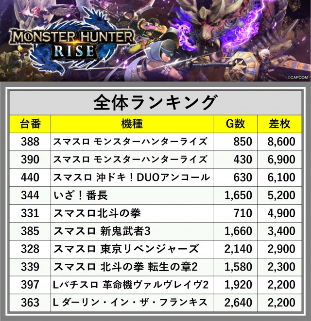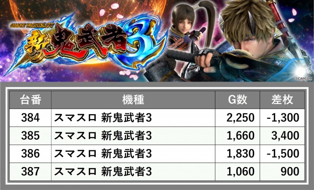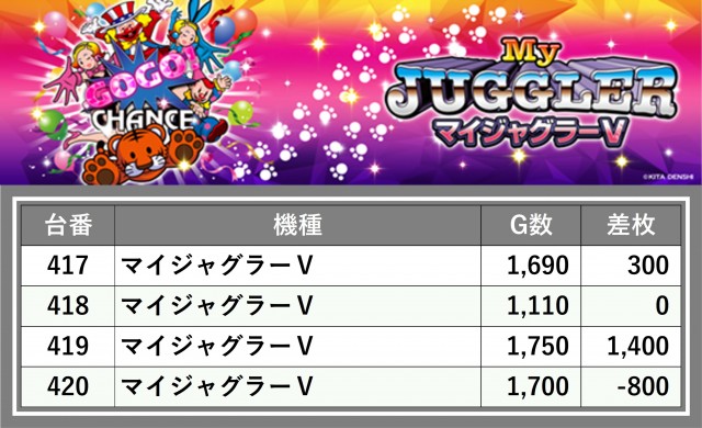 厳選された取材対象機種をはじめ、その他スロット全体から好記録が飛び出した!プレイヤーが楽しんだ1日を下記データにて振り返ってみて欲しい。
