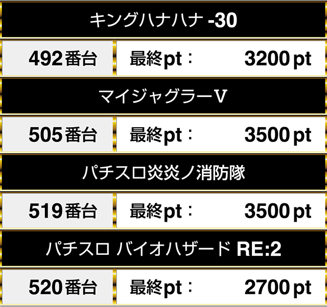 『マイジャグラーⅤ』の505番台も3500ptとなった。