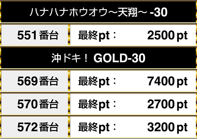 『沖ドキ!GOLD-30』では、569番台が7000ptオーバー!!
