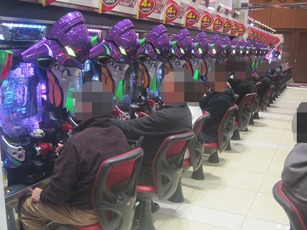 17時ごろの4円パチンコでは「新世紀エヴァンゲリオン〜未来への咆哮〜」や「P義風堂々!!〜兼続と慶次〜3 199ver.」で好調なプレイヤーが見受けられ、時折見せる嬉しそうな表情が印象に残っている。