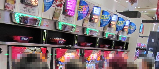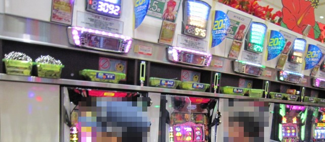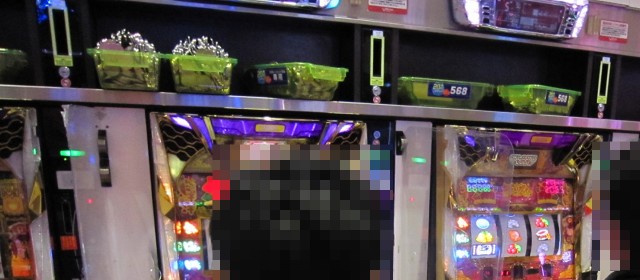 沖スロでは『沖ドキ!BLACK』『沖ドキ!GOLD-30』『ドラゴンハナハナ~閃光~ 30』『ハナハナホウオウ~天翔~-30』と、どの機種も頭上にメダルの詰まった箱がズラリと並んだ。
