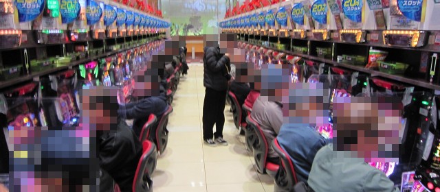 最初に向かったのが[1000円/46枚]スロのシマ。総じて見るとドル箱の多さが際立ったのはメダル機のコーナーだ。