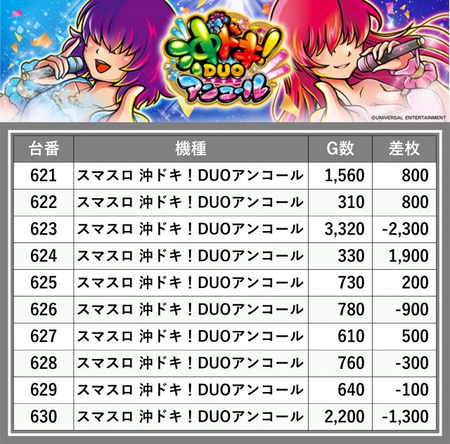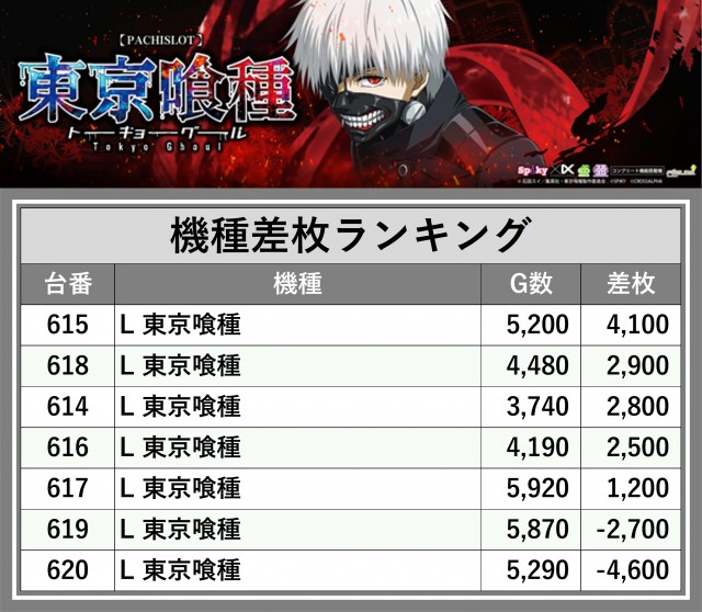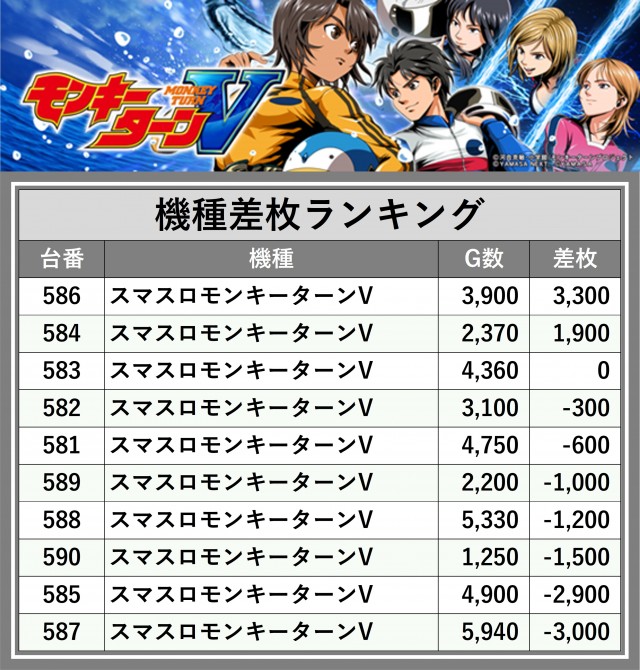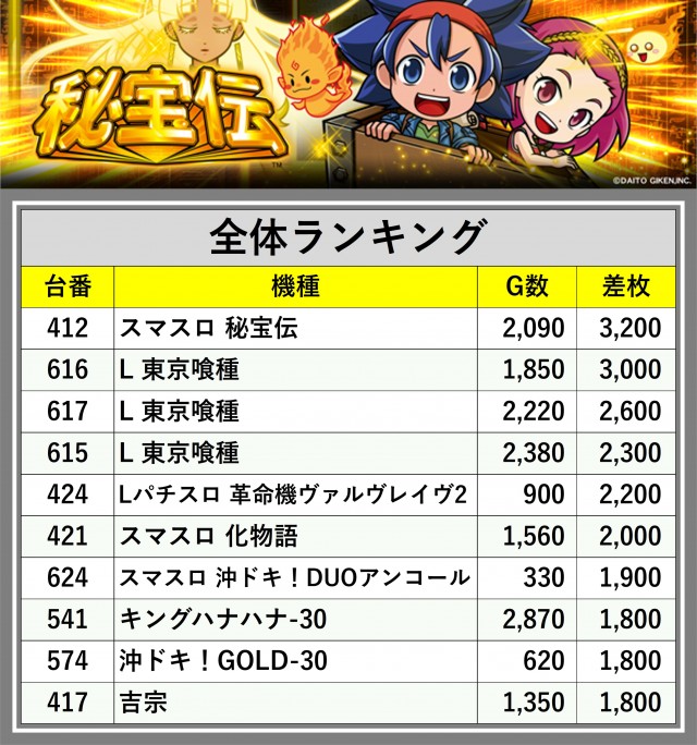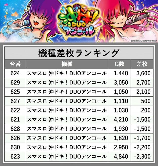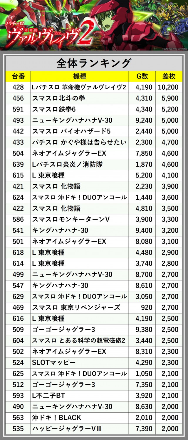 ※差枚数順に掲載しています