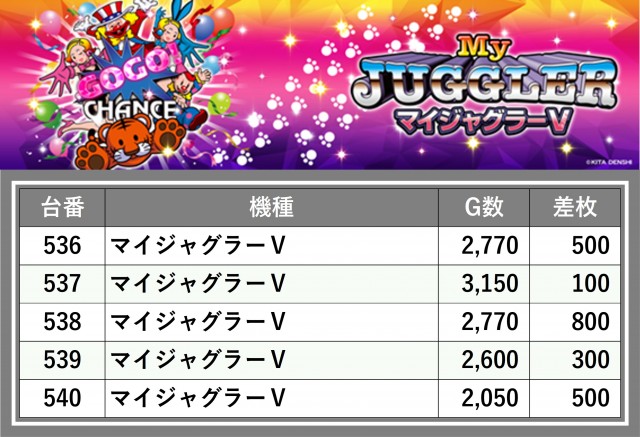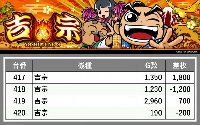 厳選された取材対象機種をはじめ、その他スロット全体から好記録が飛び出した!プレイヤーが楽しんだ1日を下記データにて振り返ってみて欲しい。