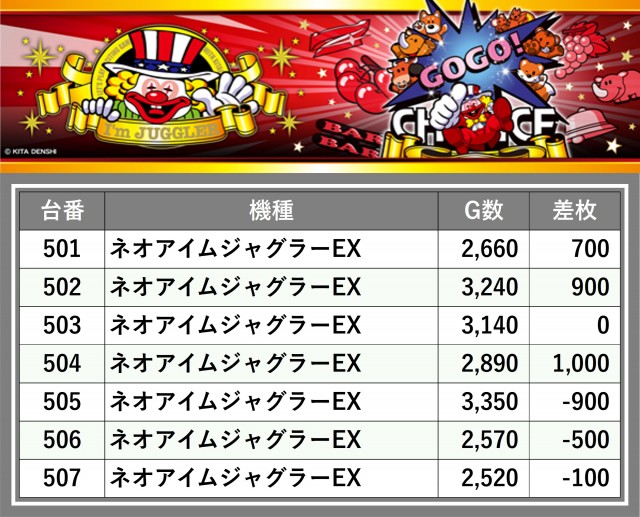 ※台番順に掲載しています
