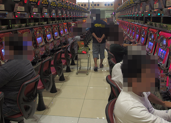 開店直後は20円パチスロにプレイヤーの支持が集まっており、「パチスロ北斗の拳 強敵」や「SLOT魔法少女まどか☆マギカ」、「バジリスク~甲賀忍法帖~絆」といった機種がほぼ満席となっていた。