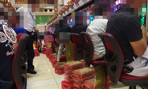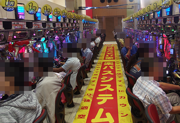低貸し玉コーナーにもプレイヤーの姿は多く、とくに1円パチンコはほぼ満席となるほどの盛況ぶり。