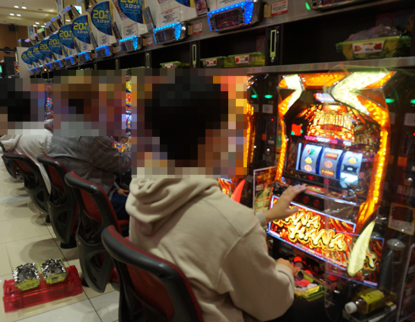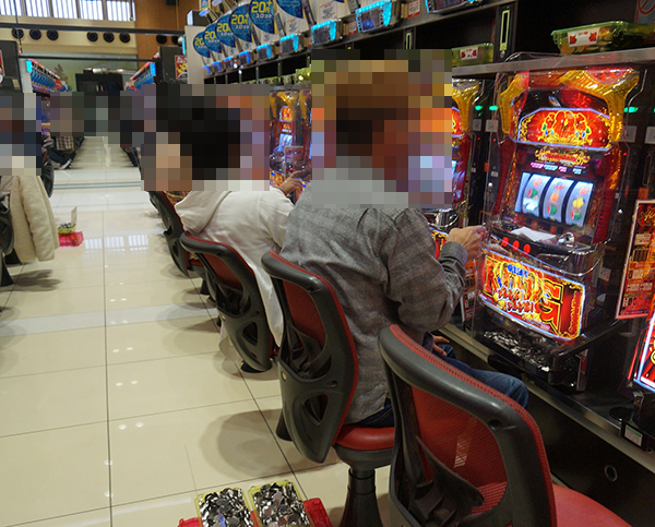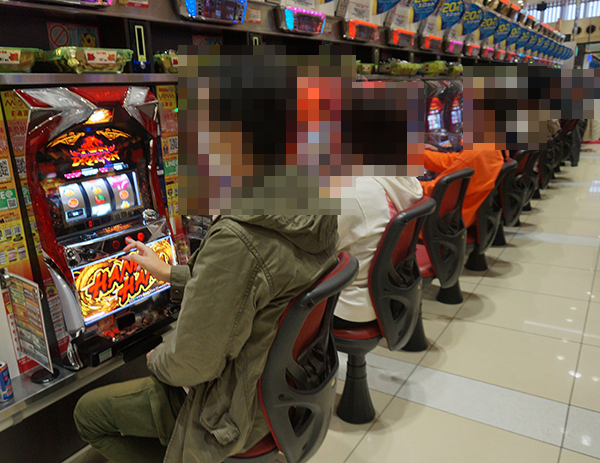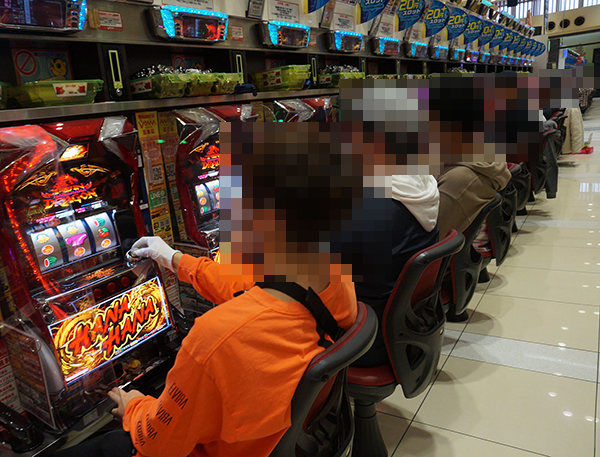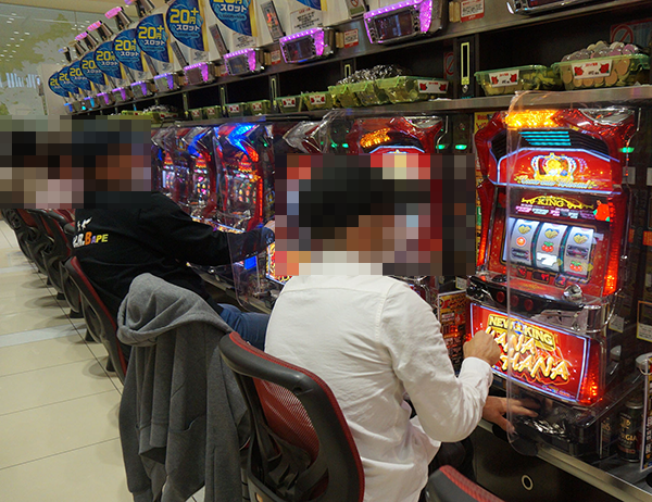 「ツインドラゴンハナハナ-30」や「プレミアムハナハナ-30」など、全4機種で活躍をしているプレイヤーを目撃! 充実した時間を過ごしているといった姿が並んでいる光景は、まさに「男の華道」といったところだろう。