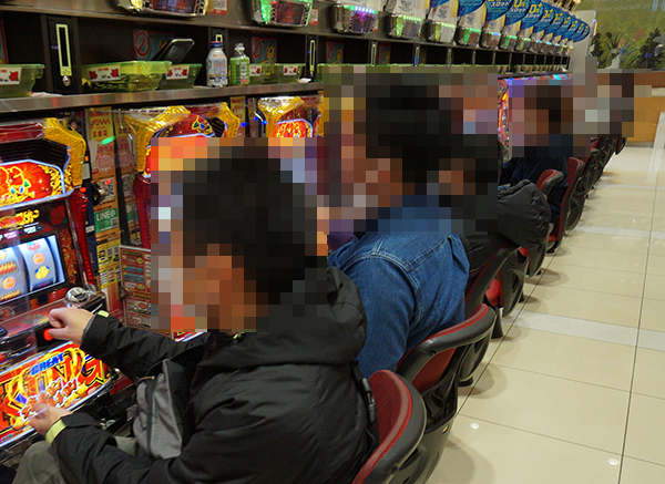 パチンコの「ぱちんこCR真・北斗無双」や「P真・牙狼」などで遊技をおこなっているプレイヤーも笑顔。