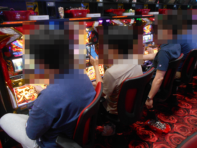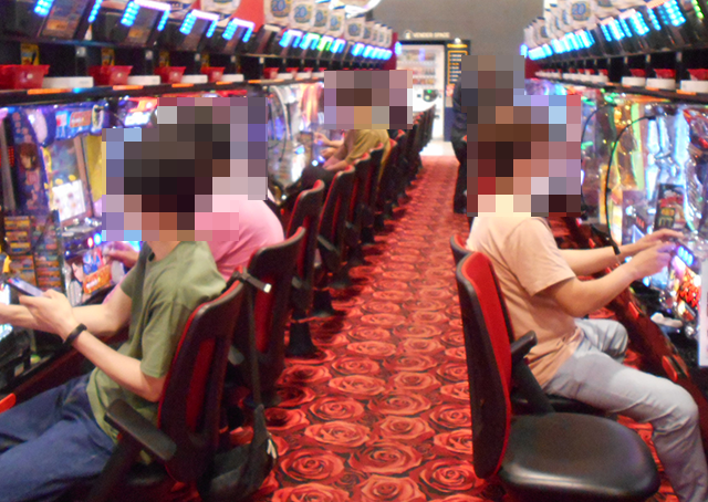 14時ごろには、「SLOTバジリスク~甲賀忍法帖~絆2」や「沖ドキ!DUO-30」が人気を集めており、にぎわいも大きい。