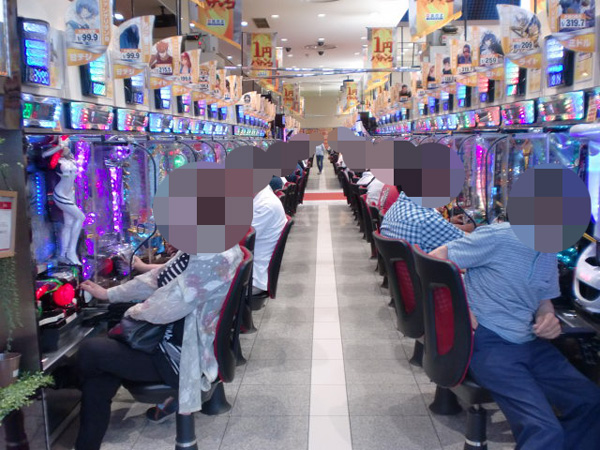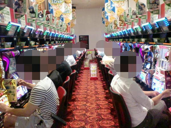 開店直後の店内をのぞいてみると、パチスロコーナーに人気が集中。