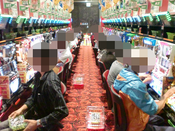 開店時間を迎え、多くのプレイヤーが向かった先はパチスロコーナー。