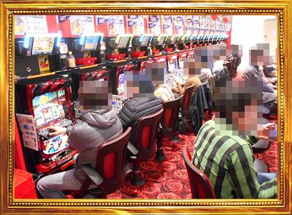 また、活気のある光景はパチスロの低貸し玉コーナーにも広がっていた。