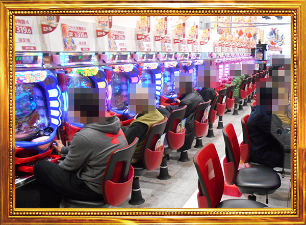 4円パチンコとおなじく、パチンコの低貸し玉コーナーも楽しげなムード。
