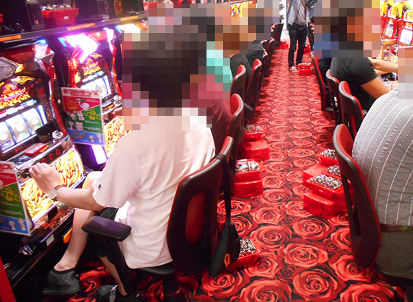 随所がにぎわうパチスロコーナーを進んでいくと、2つのシマに置かれているハナハナシリーズから活気が感じられた。5機種のシリーズ機が設置されており、どの場所でも活躍をする姿を目にしている。
