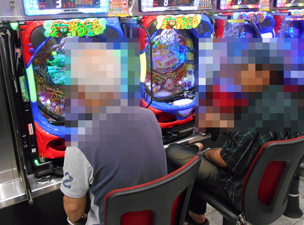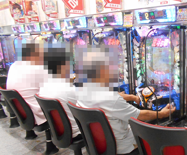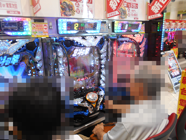 にぎわっているパチンココーナーのなかでも、とくに存在感が大きかったのはやはり「P北斗の拳8覇王」。活気づく場所でプレイヤーたちは心から遊技を満喫しているようであった。