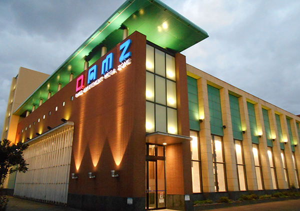 舞台の「DAMZ上越店」に到着したのは16時を過ぎた頃。外観がライトアップされており、華やかなムードとなっていた。