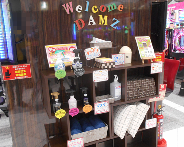 パチンココーナーにある広い通路には、クッションやブランケット、荷物を入れるカゴなどが用意されている。自由に使えるため、気軽に利用できそうだ。