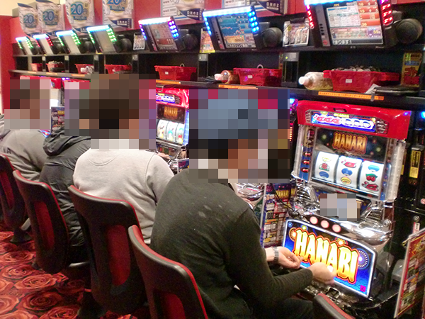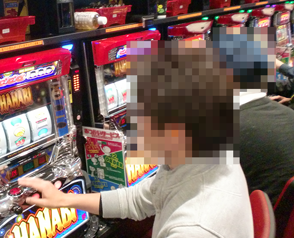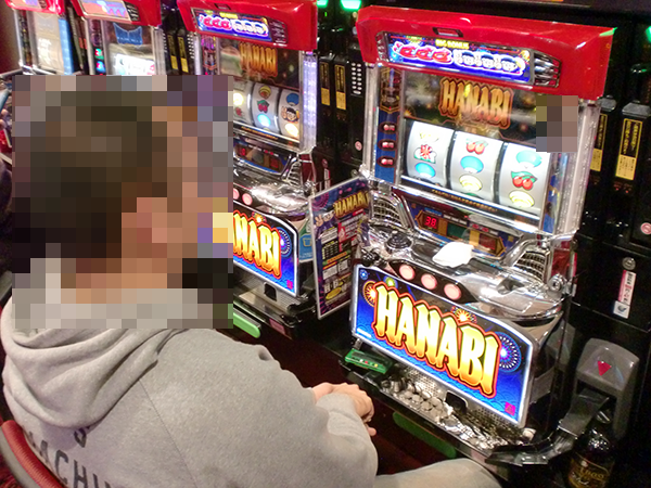 パチスロコーナーを歩いていると、「ハナビ」でうれしそうに遊技をおこなっている姿に目をひかれた。