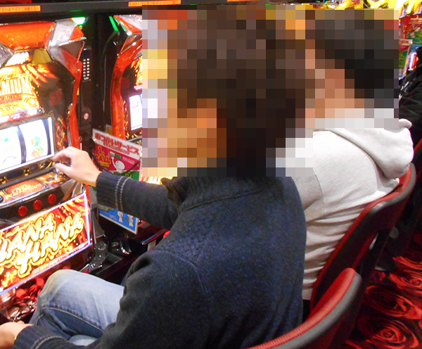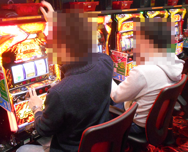 滞在中にプレイヤーが席を離れることはなく、機種の魅力をじっくりと味わえている模様。にこやかな表情も変わらず、2人から伝わってくるムードは明るいままであった。