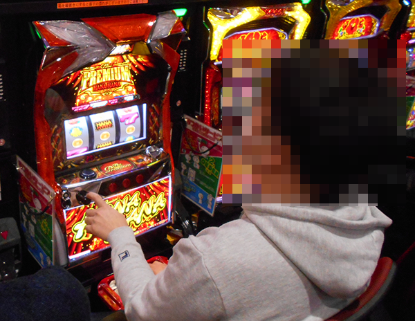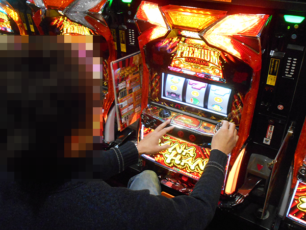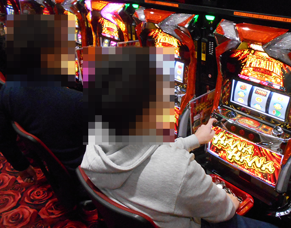 華やかなバラの模様のカーペットが敷かれたパチスロコーナーでは、「プレミアムハナハナ‐30」で遊技をおこなっているプレイヤーたちが大きな存在感を放っていた。