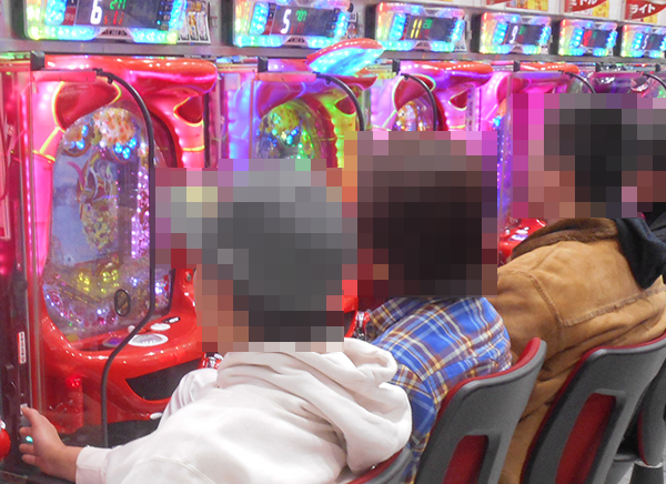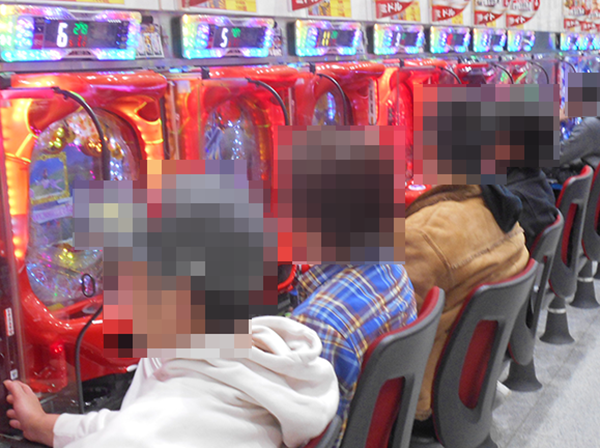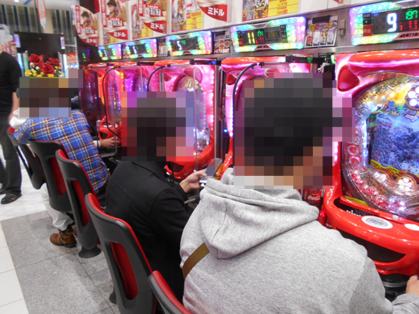 17時頃にパチンココーナーの状況をうかがうと、ミドルタイプから遊パチまで、幅広いスペックの機種に笑顔をみせる姿があった。