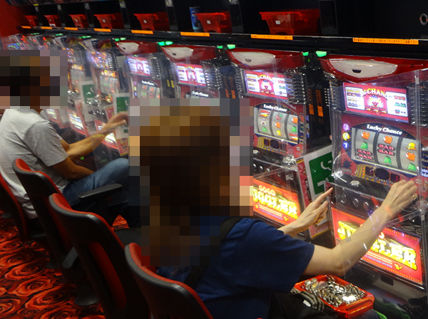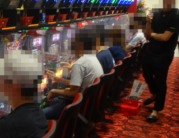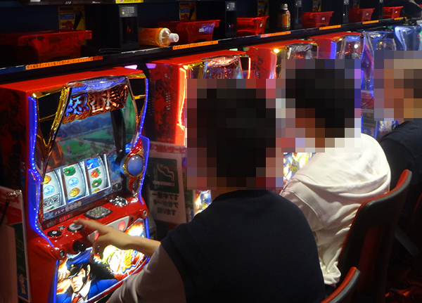 さまざまなプレイヤーが集まっている店内は、パチンコとパチスロの両方がにぎやかな状況。