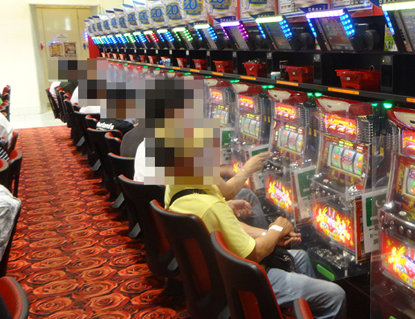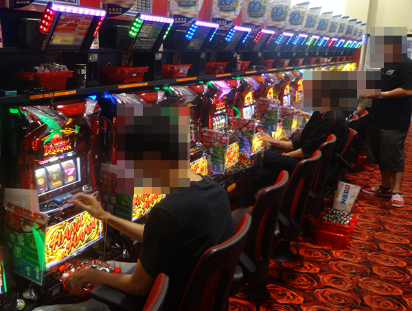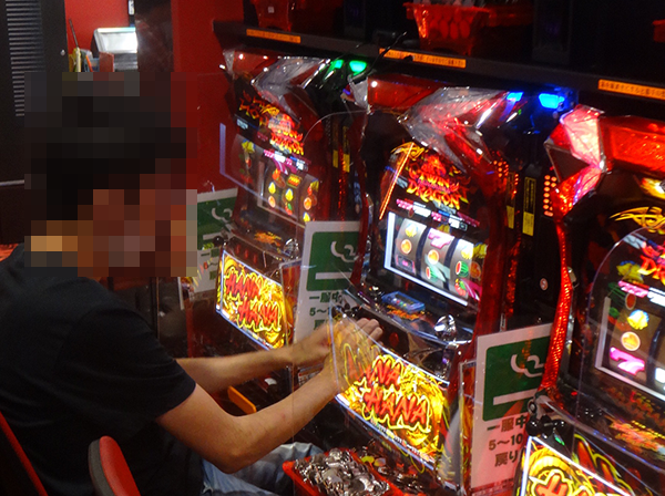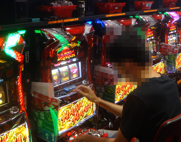 随所に華やかな光景が広がっているなかでも、とくに興味をひかれたのが「ツインドラゴンハナハナ‐30」で遊技をおこなっているプレイヤーだ。