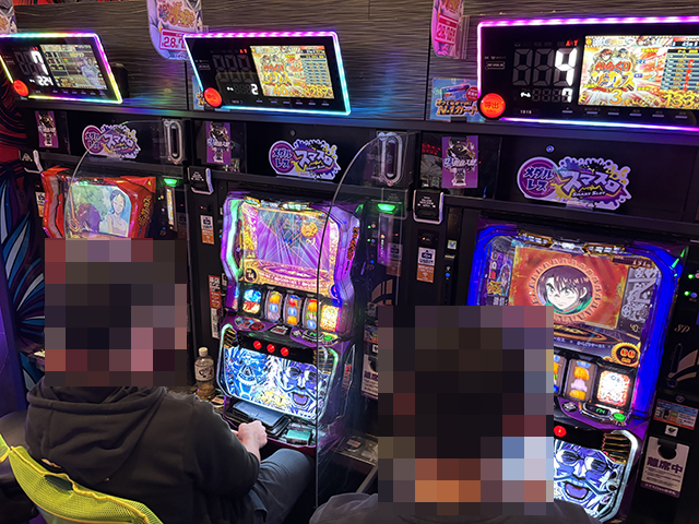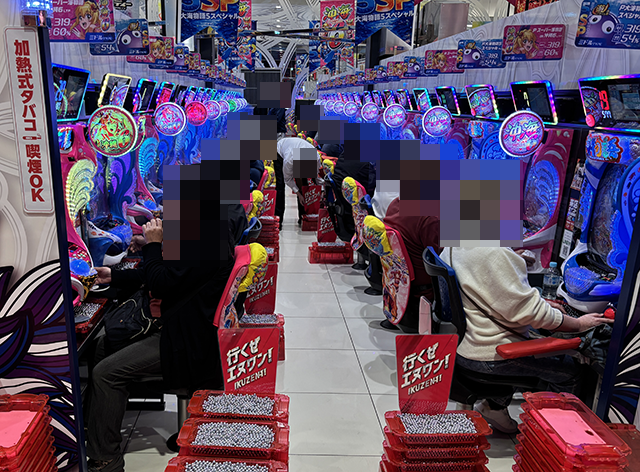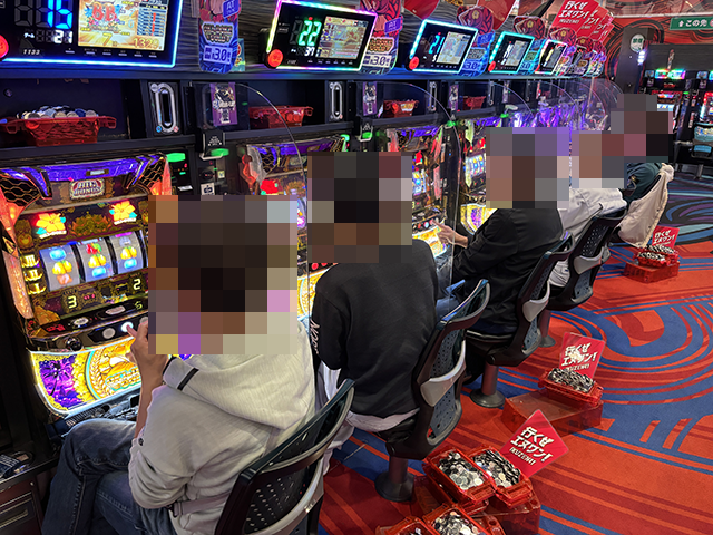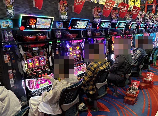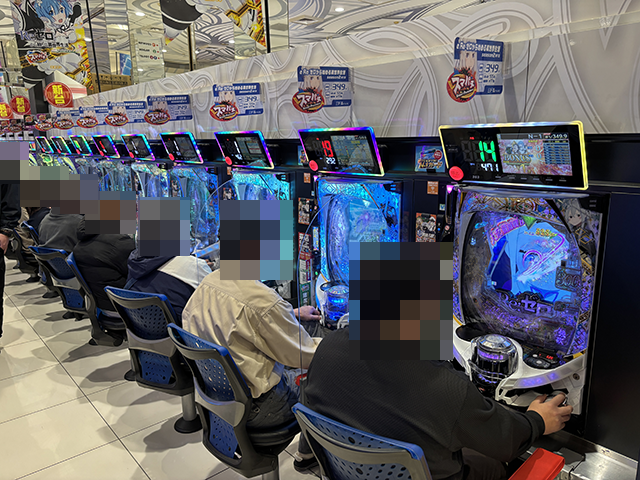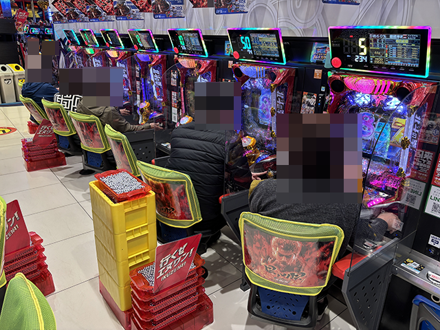 店内にはたくさんのプレイヤーが集まっており、パチンコもパチスロも活気づいていた。