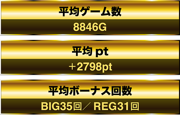 最終的な平均ゲーム数は8846Gで、平均ボーナス回数は約66回。データからも、1日を通して楽しまれていたことがうかがえた。