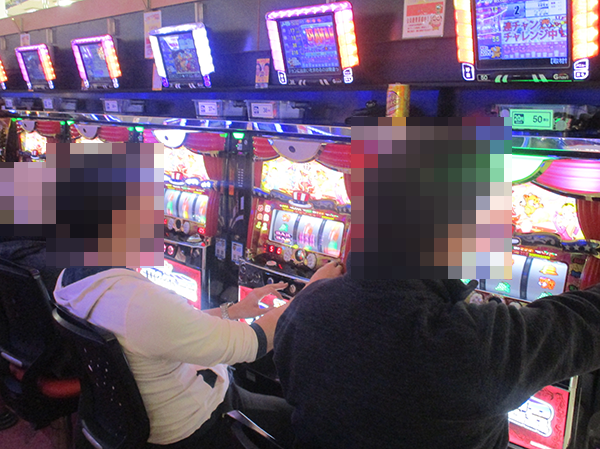 華やかなシーンのほかに、小役カウンターを使用しているプレイヤーも確認済み。あらゆる角度から遊技を楽しんでいることが伝わってきた。