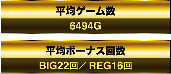 最終的な平均ゲーム数は6000Gオーバー。平均ボーナス回数はBIGとREGをあわせて約40回であった。