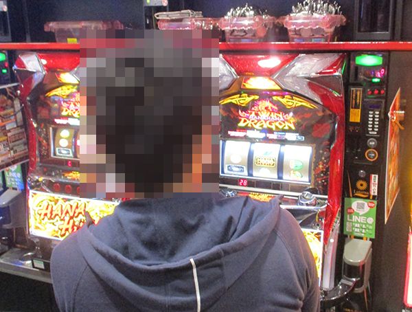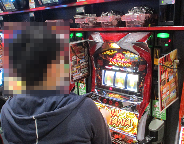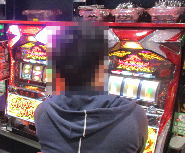 なかでも、とくにうれしそうに遊技をおこなっていたのが「ツインドラゴンハナハナ‐30」のプレイヤーだ。