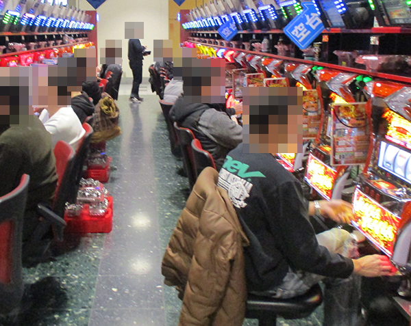 友人同士で談笑している場面もあれば、小役をカウントしながら遊技をおこなっている姿もあるなど、「DAMZ両津店」ならばどのようなプレイヤーも有意義な時間を過ごせるといったイメージ。プライベートでも来店したいと思えるホールであった。