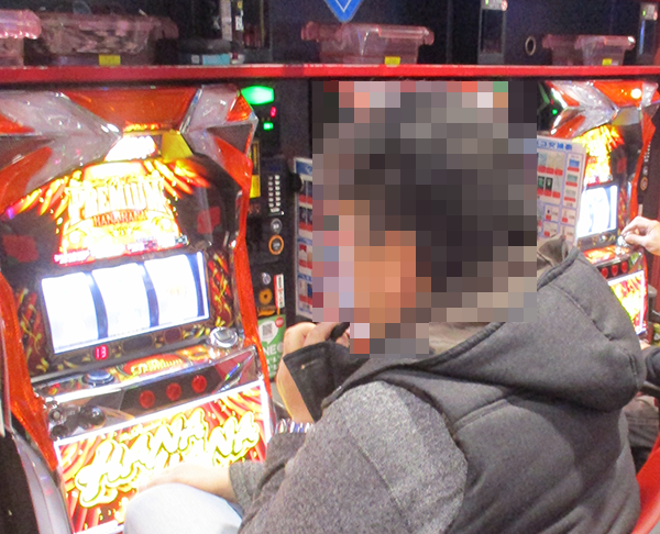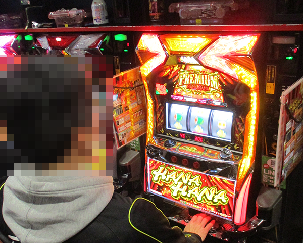 パチスロコーナーを歩いていると、「プレミアムハナハナ‐30」でイキイキと遊技をおこなっている姿に目をひかれた。