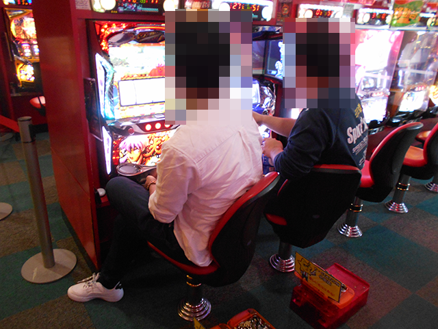設置されている2台がともに稼働しており、楽しそうに遊技をおこなう姿が並んでいた。
