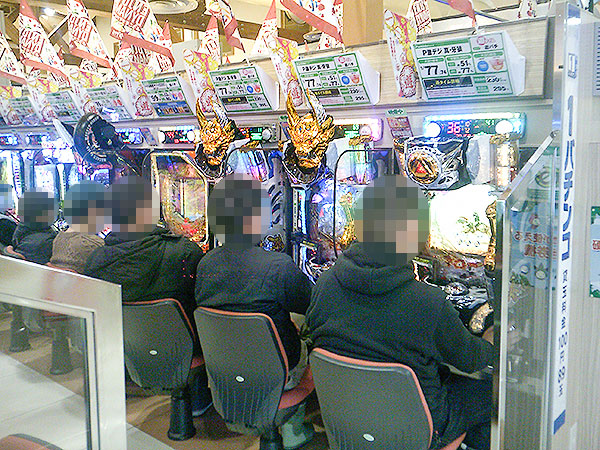 取材時は貸し玉料金に関係なくプレイヤーでにぎわっており、各シマとも明るい雰囲気に包まれていた。