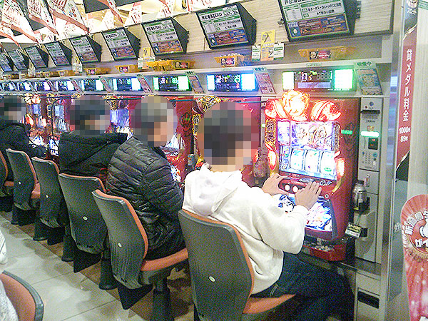 500円/89枚パチスロの稼働も高い。楽しそうにレバーを叩くプレイヤーの姿を複数目撃している。