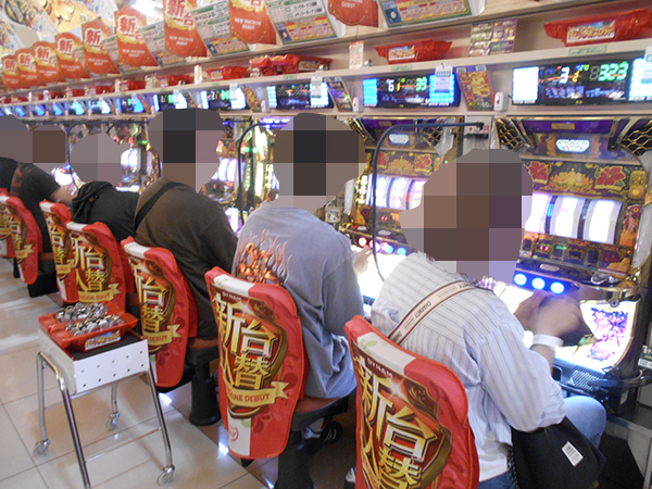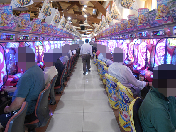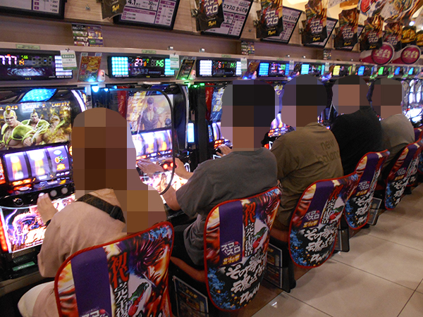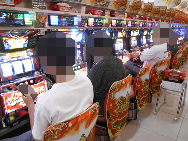 取材時は多くのプレイヤーが来店。パチンコ・パチスロともに、様々な機種が支持を得ていた。