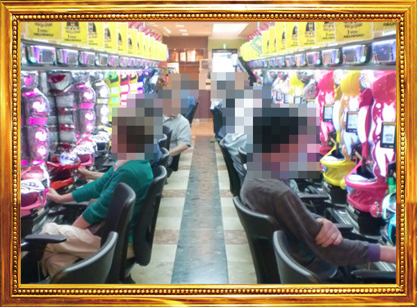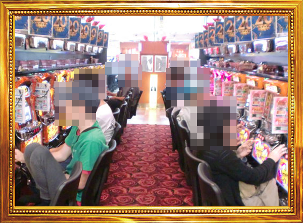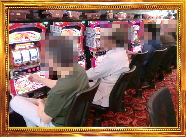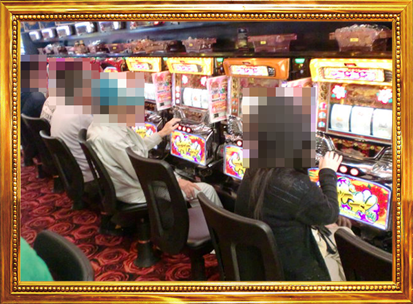 夕方ごろのパチスロコーナーでは、多くのプレイヤーが楽しそうに過ごしていた。
