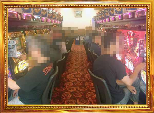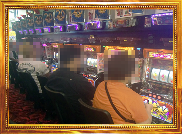 12時半ごろのパチスロでは、沖スロがひときわ目立つ存在となっていた。