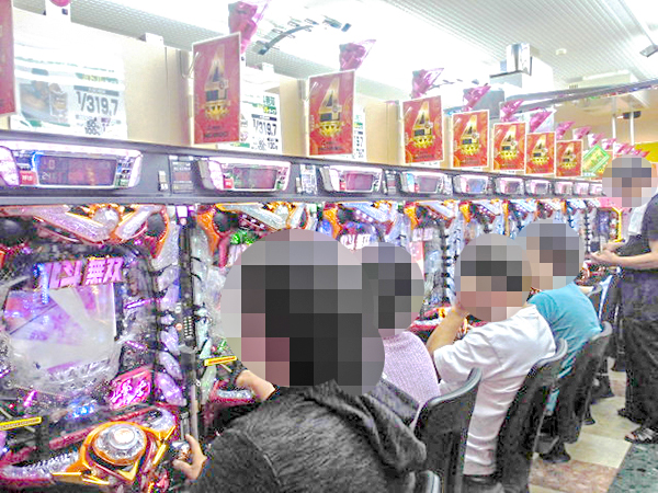 14時過ぎの4円パチンコを見ると、「ぱちんこCR真・北斗無双」や「ぱちんこCR北斗の拳7 百裂乱舞」でプレイヤーが大活躍。各人の満足そうな表情から、充実した時間を過ごせていたことがうかがえる。